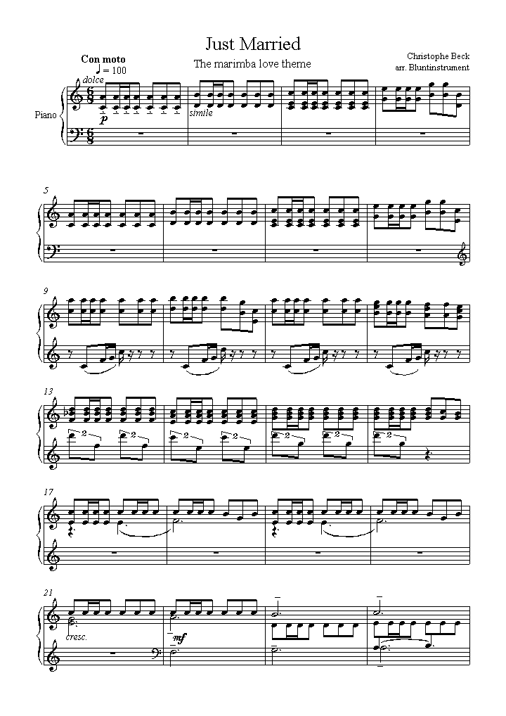 made a simple piano arrangement of clip1. Of itself it may not be perfect for