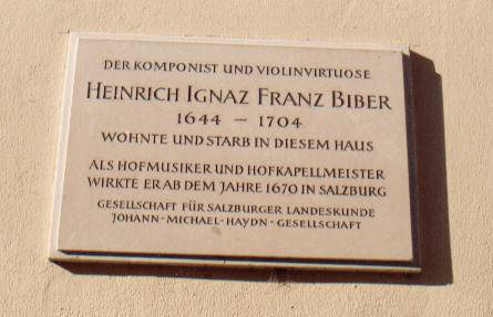 The plaque on the wall of Biber's house in Salzburg. It reads: