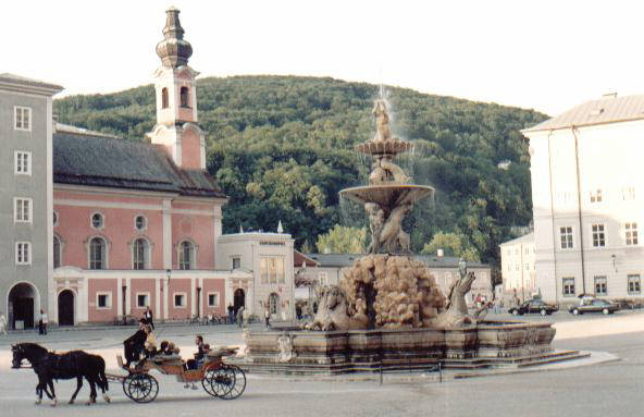 The Residenzplatz dates from about 1600, and was built by Archbishop Wolf Dietrich von Raitenau. The Renaissance-style fountain in the centre, with its four horses, was added in 1661.